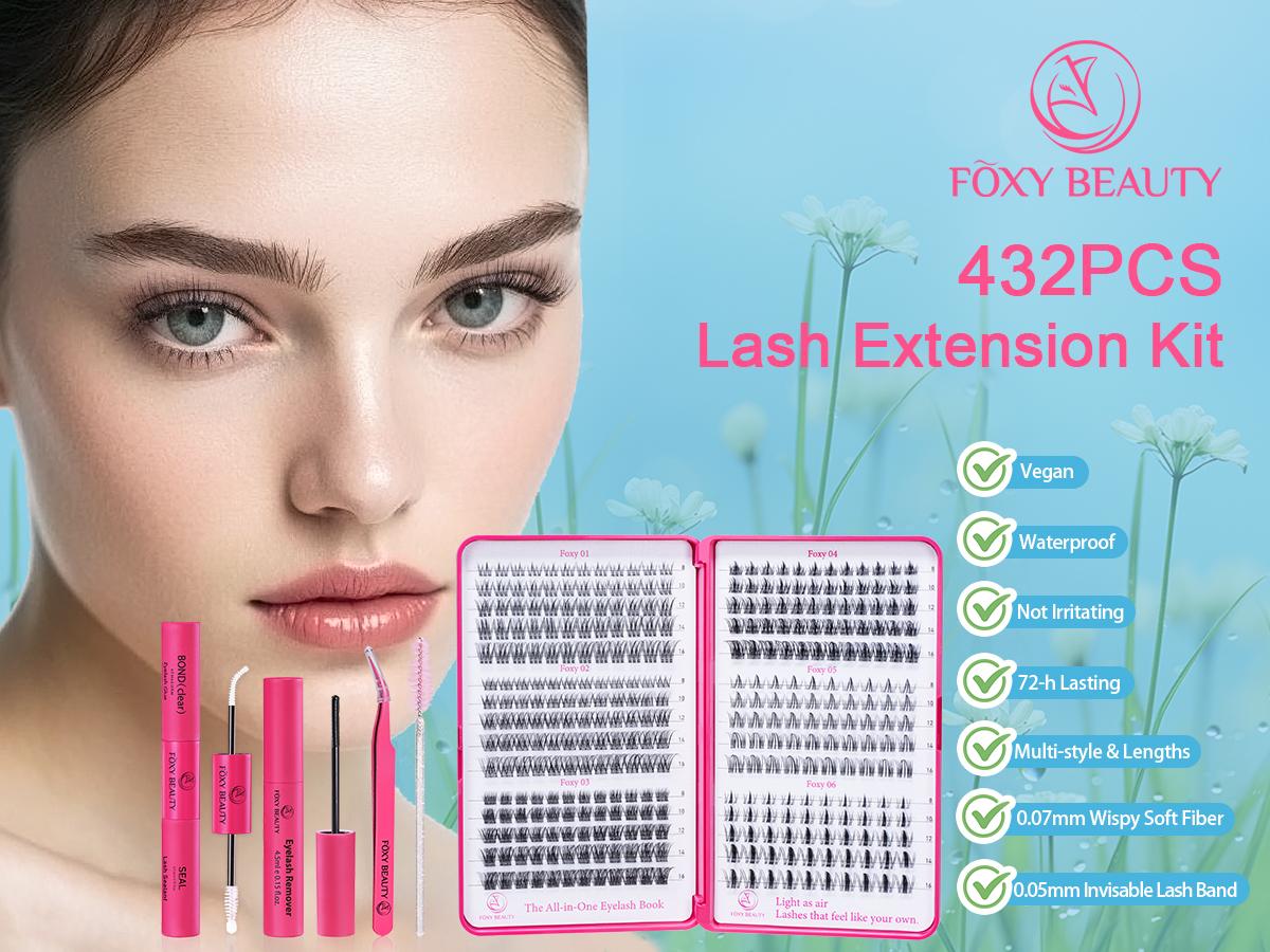 Foxy Beauty DIY Lash Extension Kit, 640PCS Waterproof Lash Clusters, Natural Look, Long-Lasting Individual Lashes, Beginner-Friendly with Bond & Seal, Remover & Applicator, Extensions at Home for Women & Girls